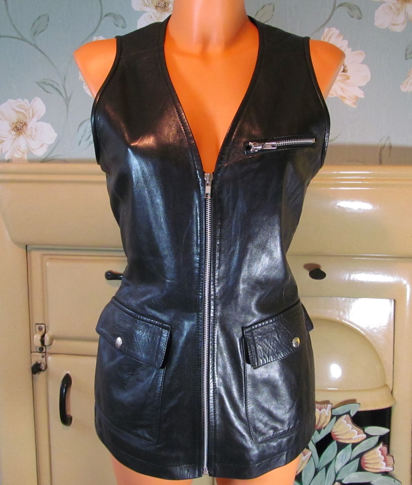 VTG REGINA RUBENS FRANCE BLACK SOFT LEATHER TUNIC JACKET WAISTECOAT SIZE R10986